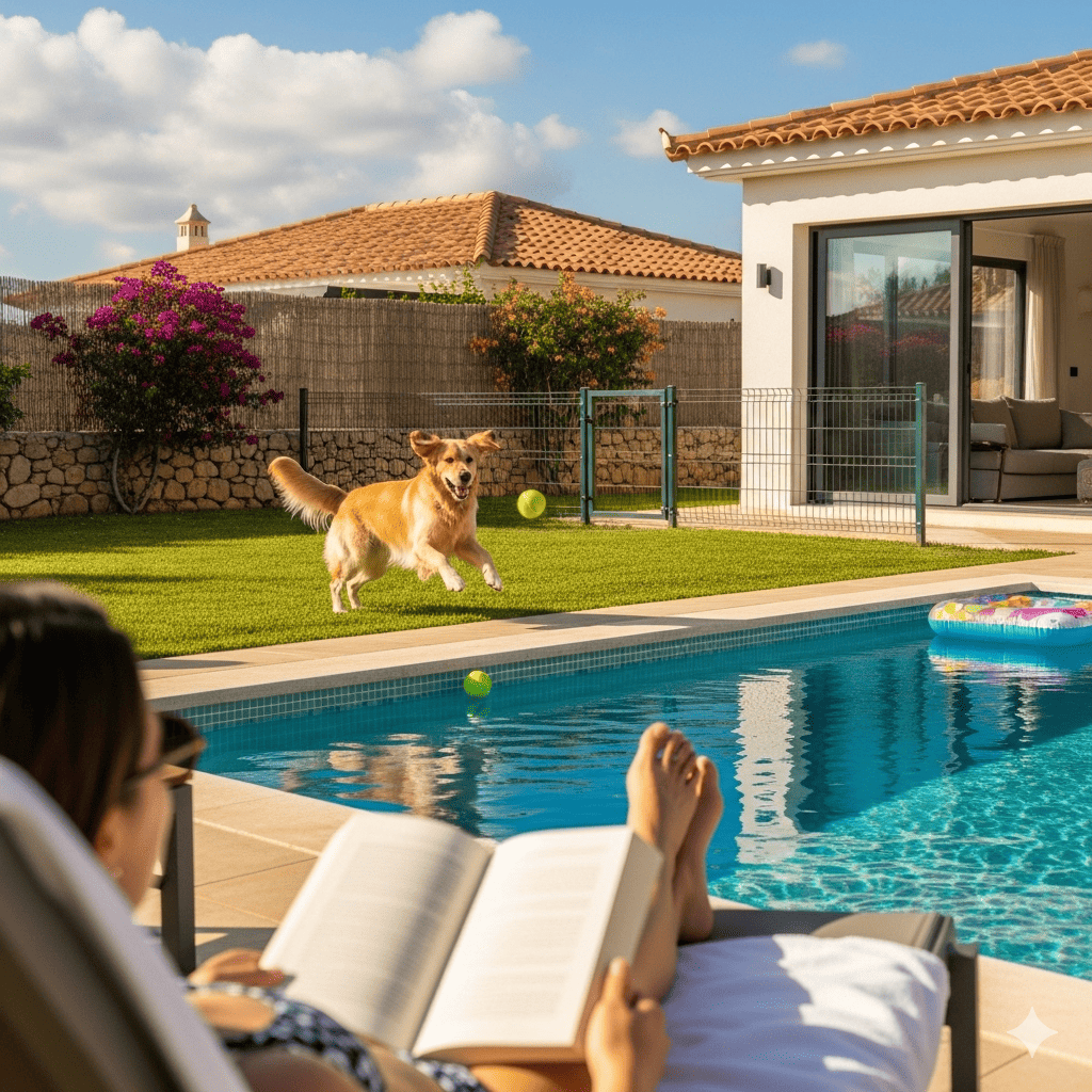 Indulge in a worry-free holiday with Spainholidays4u.com! Discover our extensive selection of holiday homes featuring private gardens and fences, providing the perfect space for your furry friend to frolic freely. While your dog enjoys the outdoor freedom, you can relax by the pool, unwinding and savoring every moment of your well-deserved vacation. Book now for an unforgettable getaway that caters to both you and your beloved pet.
